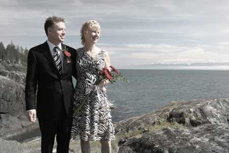 Wedding Photography Casual photography: This is Clff & Vikki's wedding on the waterfront in Sooke This couple wanted some black & white shots, and dressed in a black and white motif. Spot color enhances the title page of their album